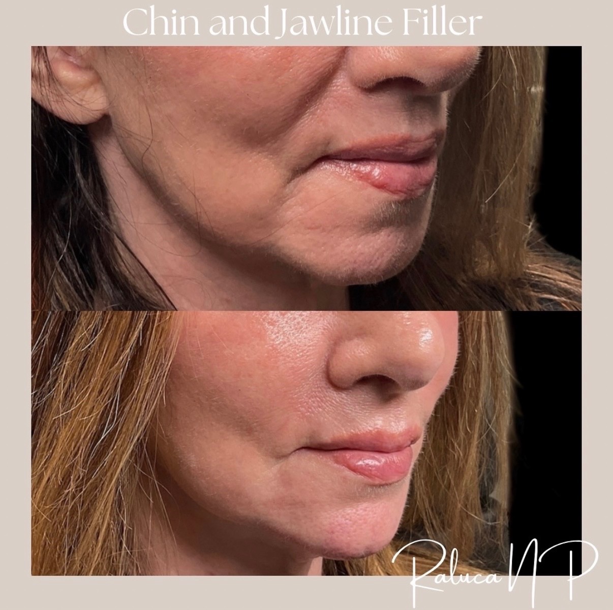 DESCRIPTION: Chin & Jawline filler — Sharper jawline, Improved side profile, Subtle lift and structure with a natural looking balance.